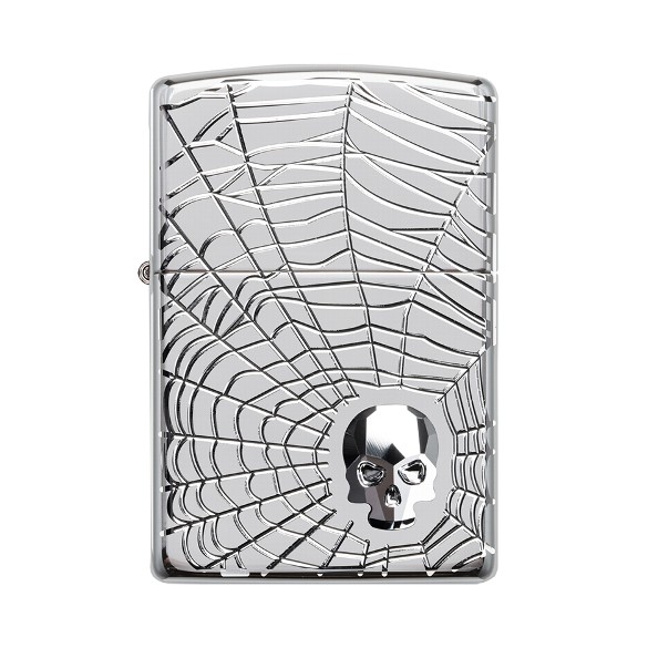 ZIPPO chrom poliert Armor Spider Web Skull Design 60004904 Feuerzeug