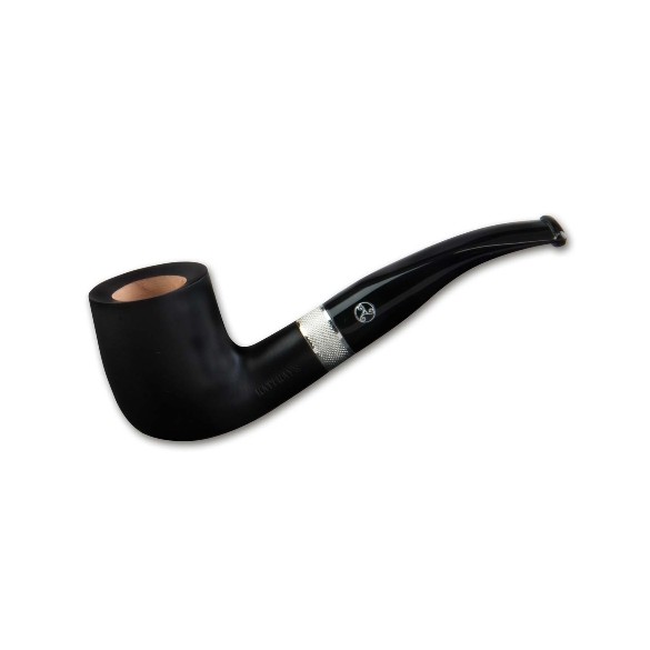 Die Pfeife Black Sheep Billard 109 schwarz ist eine elegante Pfeife mit einer glatten Oberfläche und einem schicken Zierring in silber.