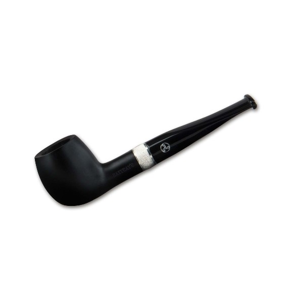 Die Pfeife Black Sheep Billard 109 schwarz ist eine elegante Pfeife mit einer glatten Oberfläche und einem schicken Zierring in silber.