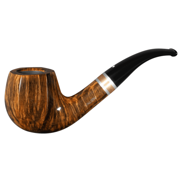 Der Name Kira bedeutet im Sanskrit "der Sonnenstrahl". Genau das spiegelt auch die besonders kontrastreiche Oberfläche dieser Pfeifen wider. Durch die bewusste Auswahl der beiden Farben und den aufwendigen Veredelungsprozess wirken die hellen Stellen der Maserung wie lebhafte Sonnenstrahlen.