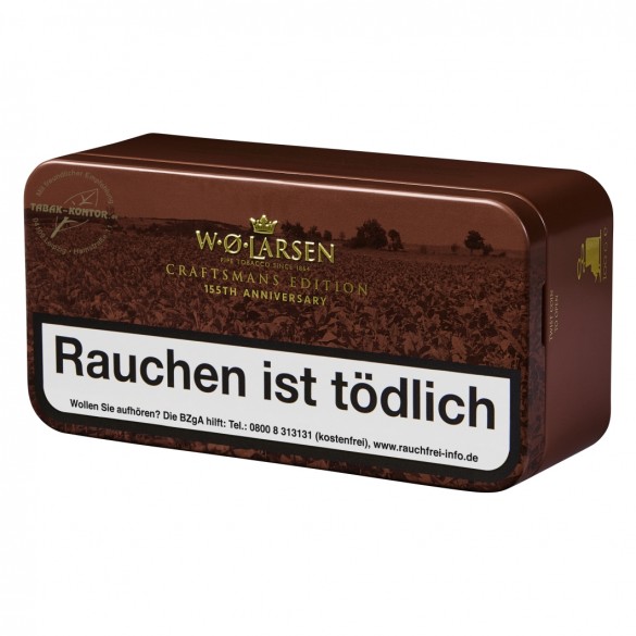 Seit 1864 kreieren die W. Ø. Larsen Master Blender Pfeifentabake höchster Qualität. Dieser Tradition folgend ist die neue W. Ø. Larsen Craftsmans Edition eine Komposition aus ausgewählten Virginia-Tabaken, abgerundet mit einem Hauch von Burley aus Afrika und Zentralamerika. Der Großteil der Virginia-Tabake wird dabei zu einem „Flake“ gepresst und anschließend zu einem „Ready Rubbed“ aufgelockert. Die verbleibenden, hellen Virginia- Anteile bieten einen wunderbaren Kontrast zu den dunklen Burley-Blättern. Nicht nur geschmacklich, sondern auch optisch eine Sensation.
