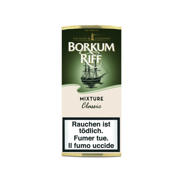 Borkum Riff Classic ist eine Premium-Qualitäts-Mischung aus Virginia und Orient Tabak. Eine faszinierende Mischung aus dunklen und hellen Tabaken mit einem authentischen Tabakgeschmack und angenehmen Aromen von Pflaumen, Nüssen, Schokolade und Kaffee.